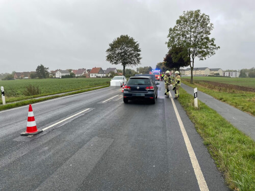 Die Feuerwehr sicherte die Unfallstelle ab, streute eine kleine Menge ausgelaufene Betriebsmittel ab und klemmte die Batterie an einem der Fahrzeuge ab.