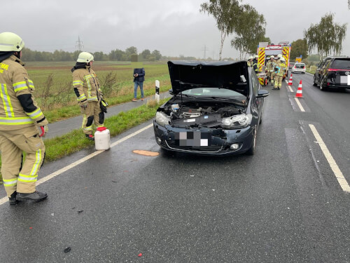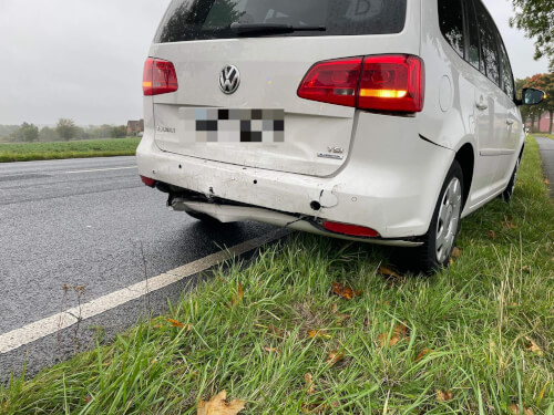 Kurz vor der Ortschaft Lehre fuhr ein VW Golf auf einen VW Touran auf. Zwei Personen wurden hierbei leicht verletzt, von denen eine Person vom Rettungsdienst in ein Krankenhaus gebracht wurde.