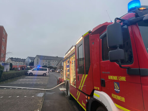Daher entschied der Einsatzleiter, ein gekipptes Fenster öffnen zu lassen. Erste Maßnahmen führte die Feuerwehr Flechtorf über eine Steckleiter durch. Nach dem Eintreffen der Drehleiter der Feuerwehr Lehre wurde diese dann als Angriffsweg genutzt.