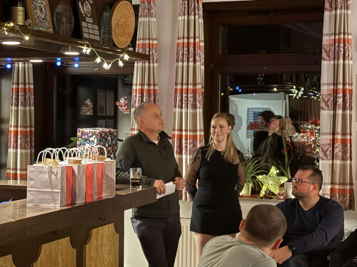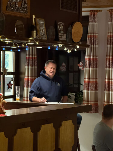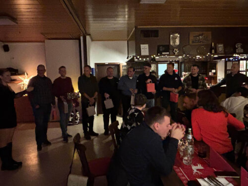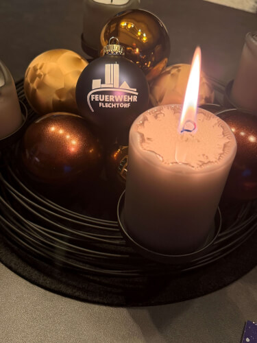 Bevor das Essen dann aber starten konnte, hatten die Einsatzkräfte für die Führungsmannschaft noch eine Überraschung vorbereitet. Der Ortsbrandmeister, sein Stellvertreter, die drei Gruppenführer und ihrer drei Stellvertreter erhielten jeder eine kleine Geschenktüte. Der Inhalt war eine Dankeskarte, ein für jeden individuell gestalteter Kaffeepot, eine "Feuerwehr-Flechtorf"- Weihnachtskugel, etwas Süßes, und für jeden noch ein ganz persönliches Geschenk.
