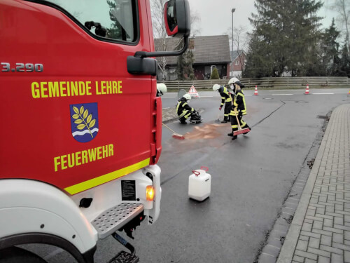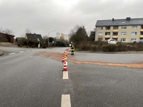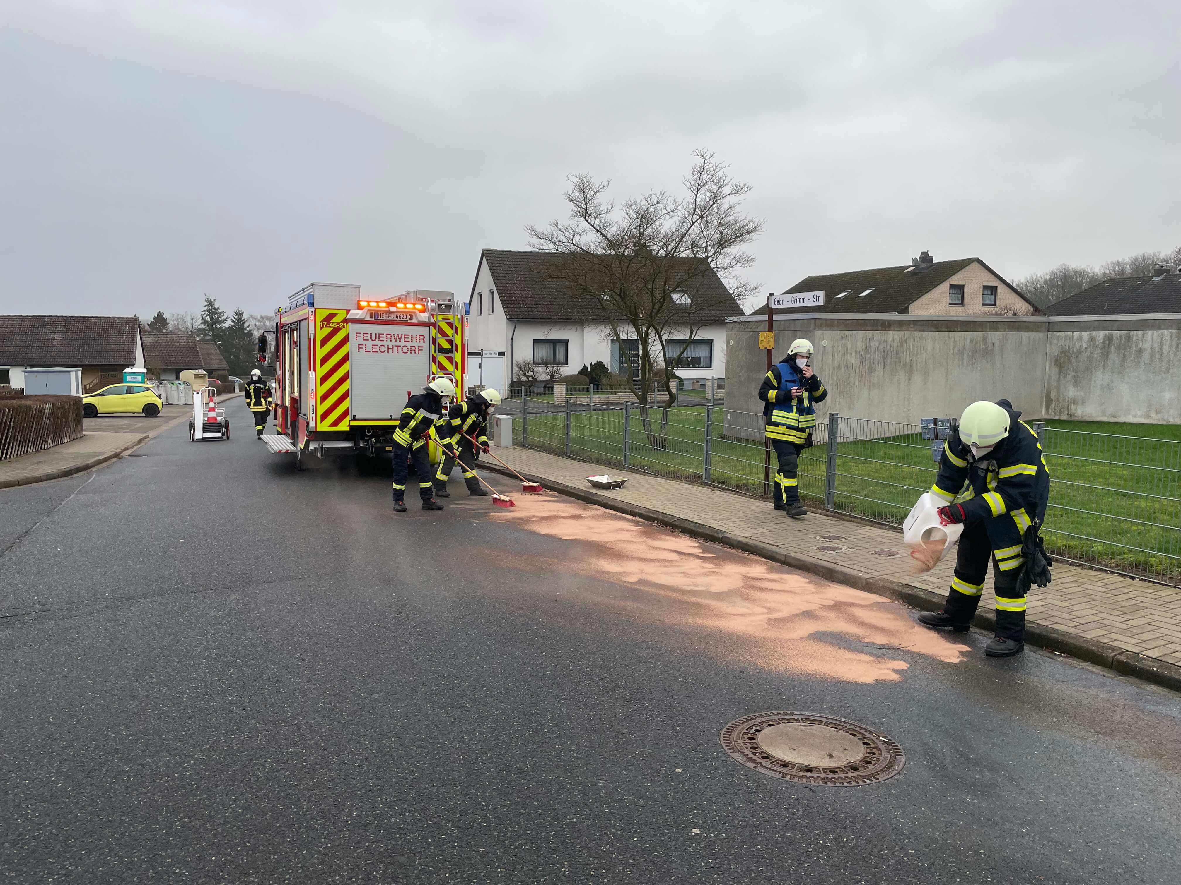 Die Feuerwehr streute die betroffenen Stellen ab, und nahm das kontaminierte Bindemittel wieder auf.