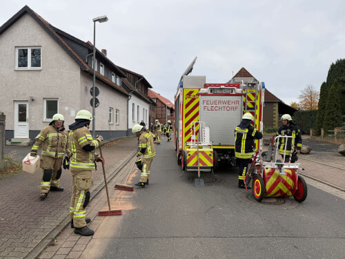 Auf Grund des Ausmaßes der Verunreinigung und der Menge des ausgelaufenen Betriebsstoffes wurden weitere Kräfte der Feuerwehr Flechtorf nachalarmiert und an die Einsatzstelle beordert.