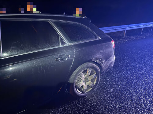 Der Lexus kam hierbei ins Schleudern und fuhr in die Schutzplanke. Hierbei wurde das Fahrzeug schwer beschädigt. Unter anderem riss auch eine der vorderen Felgen inklusiv Achsaufnahme ab und blieb auf der Fahrbahn liegen. Ein nachfolgendes drittes Fahrzeug, ebenfalls ein Audi, fuhr gegen die auf der Fahrbahn liegende Felge, welche sich unter dem Fahrzeug verklemmte.