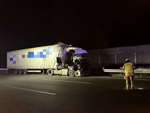 Der auffahrende LKW wurde im Bereich des Beifahrersitzes massiv beschädigt. Glücklicherweise war dieser Platz unbesetzt, so dass nur der Fahrer verletzt wurde und vom Rettungsdienst in ein Krankenhaus gebracht wurde. Eingeklemmt war er zum Glück auch nicht.